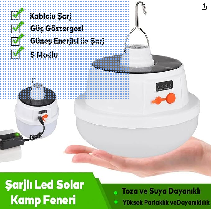 GÜNEŞ ENERJİLİ SOLAR GÜNEŞ ENERJİLİ KAMP LAMBASI ASKILI 5 FARKLI YANMA IŞIK