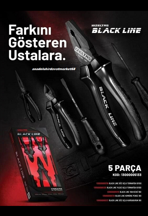 İZELTAŞ BLACK LİNE PENSE SETİ CARBON ÇELİK YANKESKİ KARGABURUN TORNAVİDA 5PCS